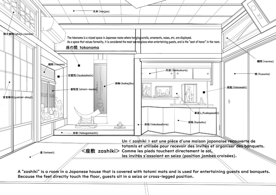 和室は、外国のお客様に人気がありますので、説明できるように今回イラストを作りました