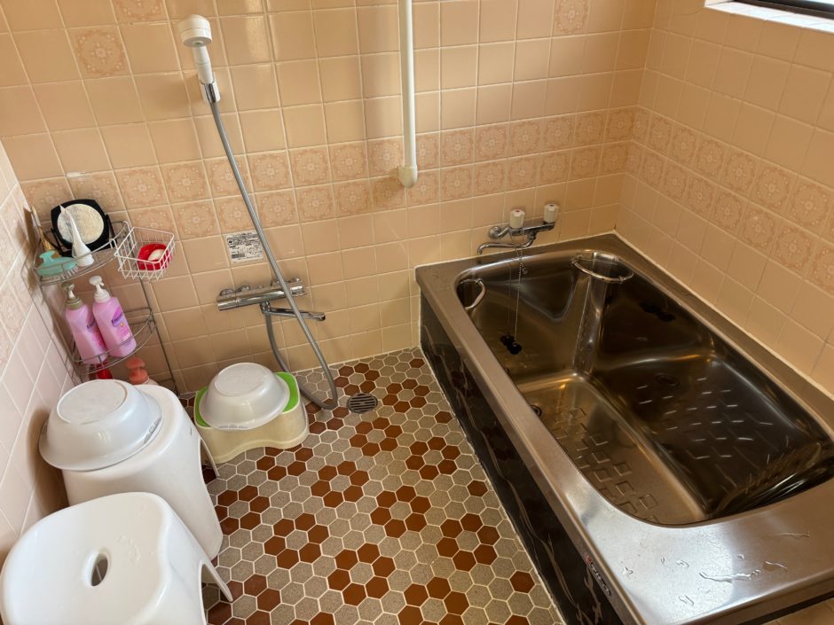 昔ながらの可愛いタイル張りやステンレスの浴槽が特徴的な、家庭的で落ち着くお風呂です。 豪華な温泉設備ではございませんが、完全プライベートな空間ですので、小さなお子様連れのご家族やご友人同士でも、他のお客様に気兼ねすることなくご自分のペースでご入浴いただけます。 シャンプーやボディソープ等を完備しております。