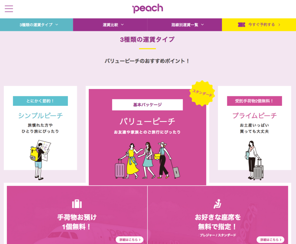 私が、今回Peachで予約したプランは、「シンプルピーチ」というので受託手荷物、座席指定、フライト変更の手数料、予約取り消し時の払い戻しなどが全て別料金になってます。それらをセットした「バリューピーチ」というプランがありますが、航空券代がその分高くなります。なので、私が最近乗るPeachは、全てシンプルピーチで予約してました。前回台湾に旅行した10月段階では、まだ機内持込は10kgまででした。だから、問題無かったんですが、今回は7kgです。